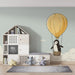 Wyrusz w powietrzną przygodę z tym tapetą dla dzieci, przedstawiającą uroczego pingwina unoszącego się w niebie na pokładzie uroczego balonu. Unosząc się nad miękkimi, puszystymi chmurami, ta dekoracja zachwyci małych marzycieli i pobudzi ich wyobraźnię.