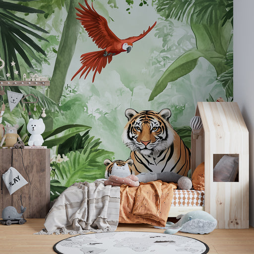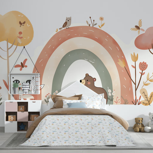 Ta tapeta wyróżnia się stylem delikatnej akwareli i odcieniami delikatnego beżu, pudrowego różu oraz delikatnej zieleni. Każdy detal, od rozkwitłych róż po lekkie liście, tworzy świat zarówno naturalny, jak i czarujący. Subtelny kontrast między rysunkiem lwiątka a kwiatowymi akcentami tworzy wyrafinowany efekt wizualny, idealny do stworzenia ciepłej i kojącej atmosfery dla Twojego dziecka.
