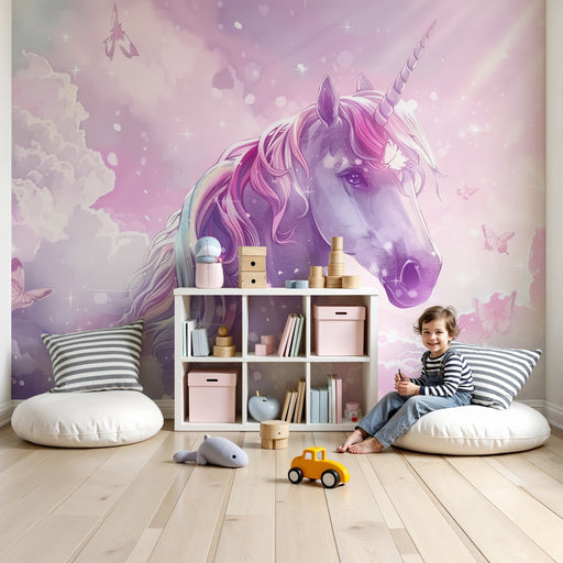 Wprowadź delikatność i elegancję do pokoju swojego dziecka dzięki tej tapety dla dzieci. Daj się oczarować czułym spojrzeniem tego majestatycznego lwiątka, ozdobionego delikatną koroną z dzikich kwiatów. Wokół niego tańczą lekkie motyle i wdzięczne ważki, wprowadzając nutę poezji i wyrafinowania do tego uspokajającego wystroju.