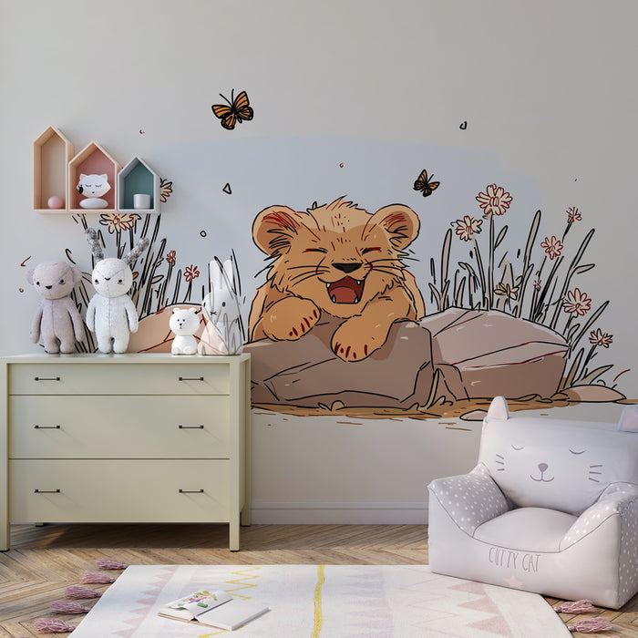 Przynieś do pokoju swojego dziecka odrobinę miękkości i radości za pomocą tej tapety dla dzieci przedstawiającej uroczego lwa morskiego. Stojący na skałach i otoczony kolorowymi kwiatami, ten uśmiechnięty mały drapieżnik doskonale pobudza ciekawość i wyobraźnię najmłodszych.