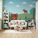 Tapeta do pokoju dziecięcego | Leśne zwierzęta z misiem, królikiem i szopem