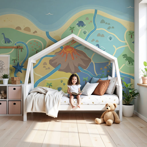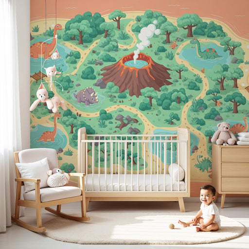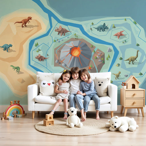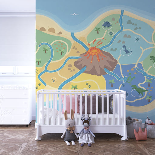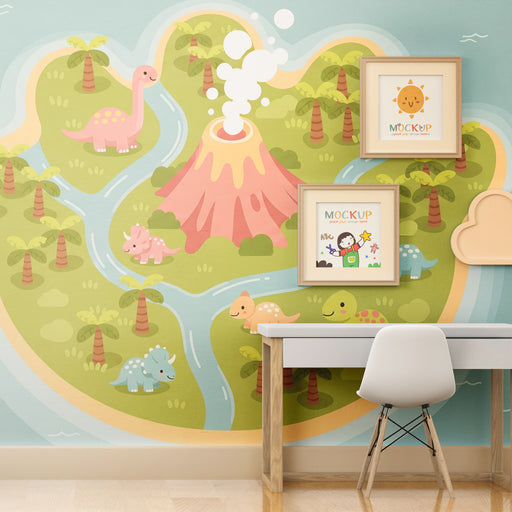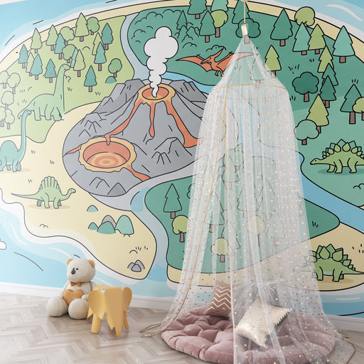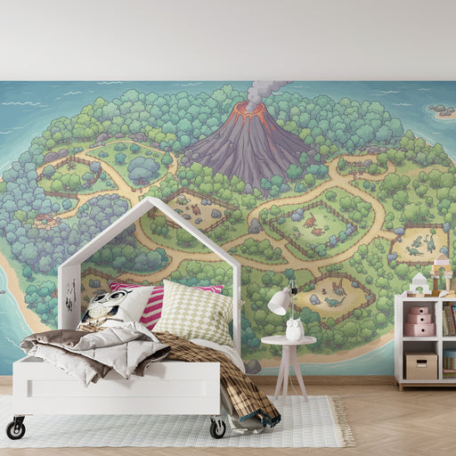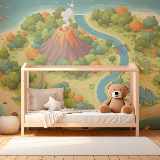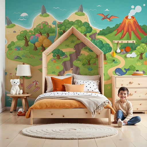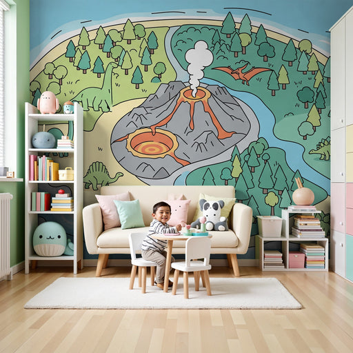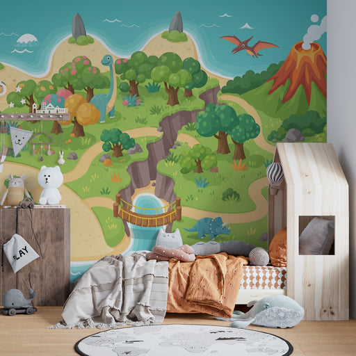 KidsWallPrzekształć pokój swojego dziecka w fascynujący prehistoryczny świat za pomocą tego tapety dla dzieci, przedstawiającej tajemniczą wyspę zamieszkał...