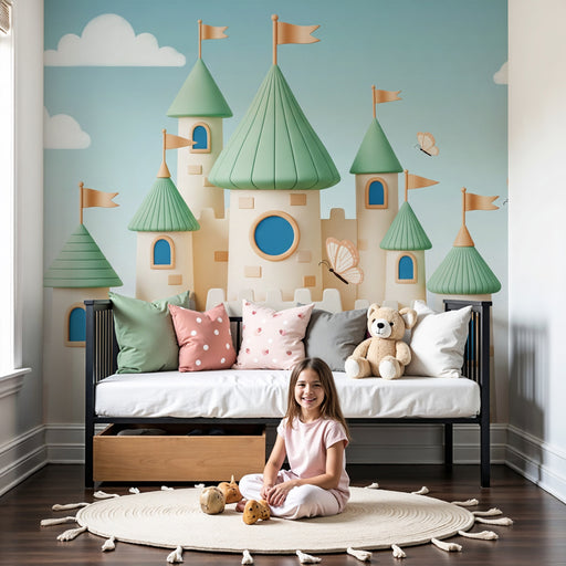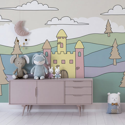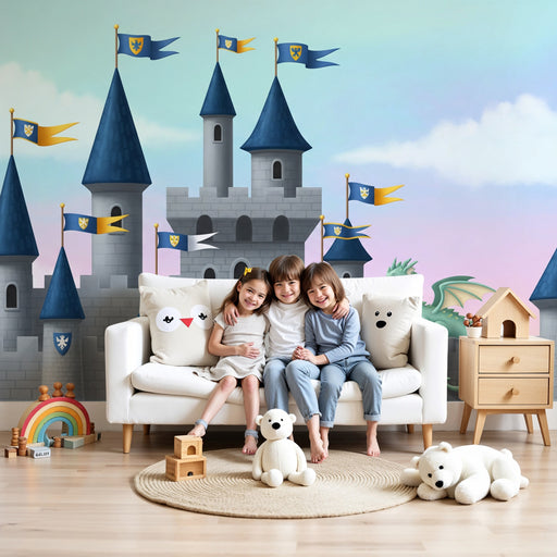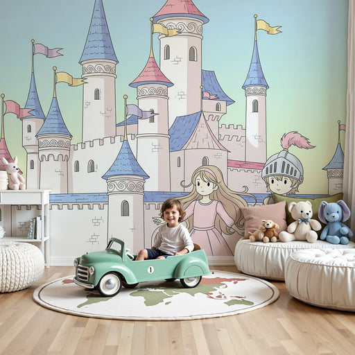 KidsWallPrzemień pokój Twojego małego poszukiwacza przygód tym tapetą inspirowaną baśniami. Wznosi się majestatyczny zamek, ozdobiony imponującymi wieżami ...