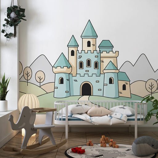 KidsWallPrzekształć pokój swojego dziecka w magiczne królestwo z tą tapetą dla dzieci przedstawiającą piękny zamek. Osadzony w sercu sielankowego krajobraz...