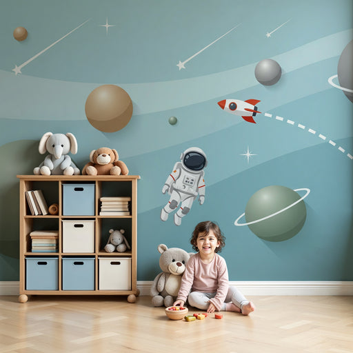 KidsWallPrzekształć pokój swojego dziecka w prawdziwy międzygalaktyczny świat za pomocą tego tapety dla dzieci inspirowanej kosmosem. Unoszący się astronau...