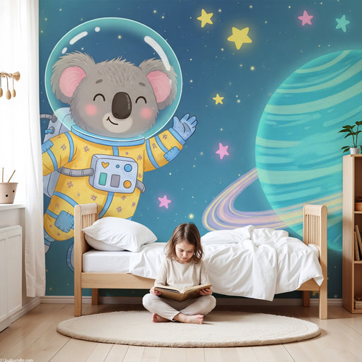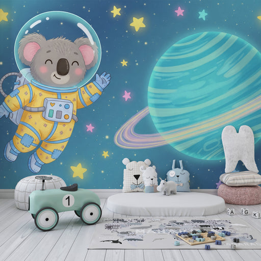KidsWallWyrusz w kosmiczną przygodę z tą tapetą dla dzieci, na której widnieje uroczy kosmiczny koala dryfujący w przestrzeni. W kolorowym skafandrze, ten ...