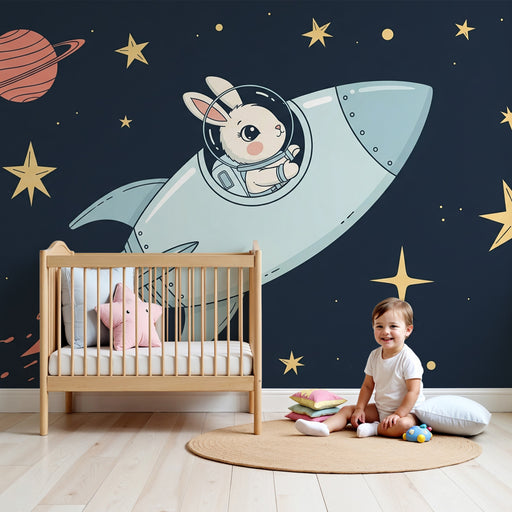 KidsWallWyrusz w kosmiczną przygodę z tą tapetą dla dzieci, na której widnieje uroczy królik-astronauta. W swojej srebrnej rakiecie eksploruje on głębiny w...