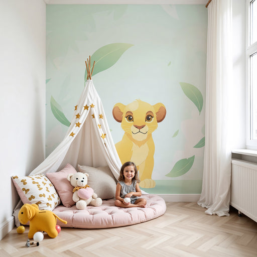 KidsWallPrzynieś delikatność i marzenia do pokoju twojego dziecka za pomocą tego tapety dla dzieci przedstawiającej uroczego młodego lwa spokojnie śpiącego...