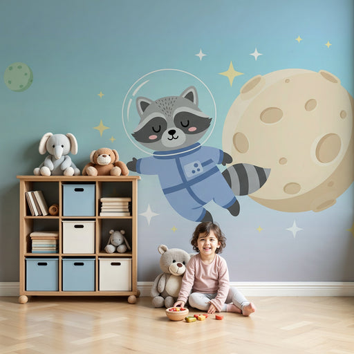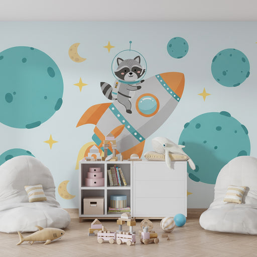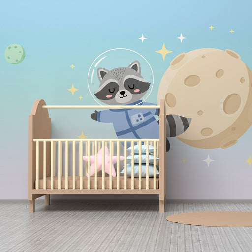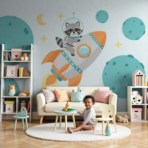 KidsWallZachęć wyobraźnię swojego dziecka tym tapetą dla dzieci, przedstawiającą uroczego szopka astronautę pływającego przez przestrzeń. Z futurystycznym ...