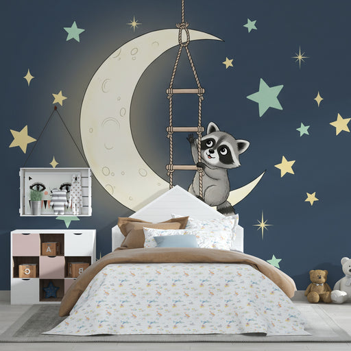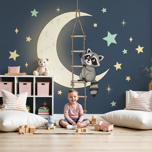 KidsWallPrzekształć pokój swojego dziecka w gwieździste niebo za pomocą tego tapety dla dzieci. Uroczy szop wspina się po zawieszonej drabinie przed jasnym...