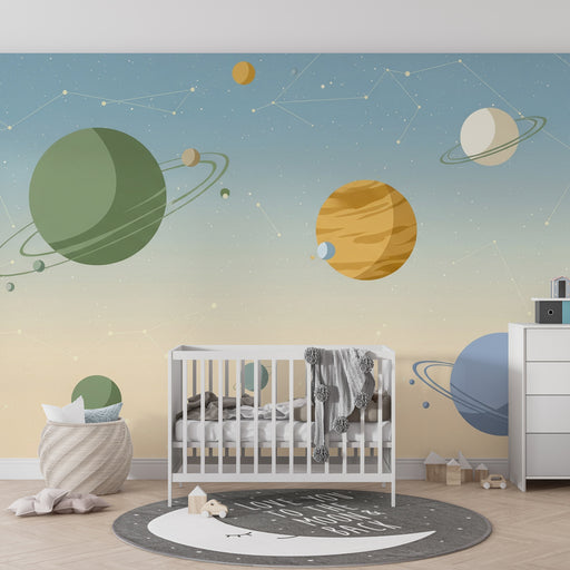 KidsWallBadaj nieskończoność wszechświata z tą tapetą dla dzieci, przedstawiającą fascynujący kosmos pełen kolorowych planet i intrygujących wzorów. Na głę...