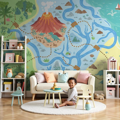 KidsWallPrzekształć pokój swojego dziecka w prawdziwą krainę przygód dzięki tej tapetowi dla dzieci, przedstawiającemu fascynującą mapę skarbów. Tajemnicze...