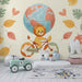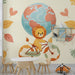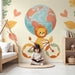 Przekształć pokój swojego dziecka w zabawne i inspirujące miejsce z tą tapetą dla dzieci, na której przedstawiony jest uroczy lew pedałujący na rowerze trzymając w ręku globus. Otoczony liśćmi o jesiennych odcieniach, ten uroczy motyw pobudza wyobraźnię i zachęca do przygód.