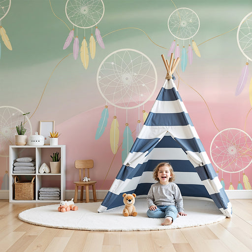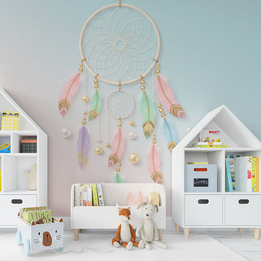 Przekształć pokój swojego dziecka w wymarzoną przestrzeń za pomocą tego tapety dziecięcej, przedstawiającej czarujący łapacz snów. Pióra w delikatn...