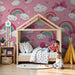 Przynieś do pokoju swojego dziecka odrobinę radości i koloru dzięki temu tapetowi z tęczowymi chmurami. Na różowym tle delikatne chmury ozdobione kokardami i jaskrawe tęcze tworzą zabawną i przyjazną atmosferę.