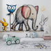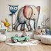Ta tapeta zwierzęta urocze przedstawia uroczą paradę z królikiem, słoniem i balonem w kształcie sowy. Doskonałe do inspirowania dziecięcej wyobraźni, ta kolorowa tapeta dodaje radosną i zabawną atmosferę do każdego pokoju dziecięcego.