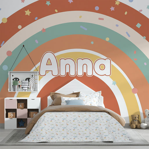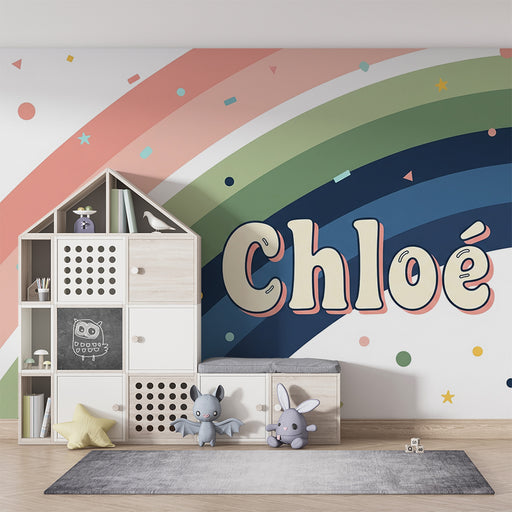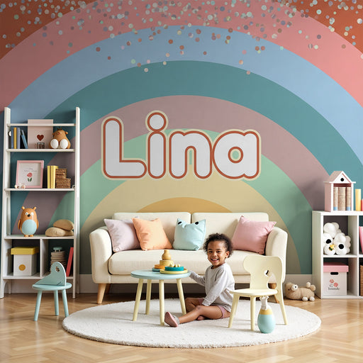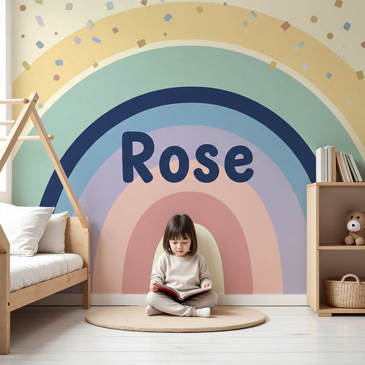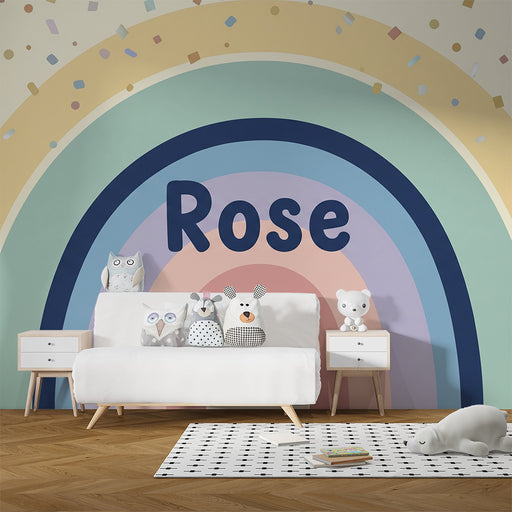Pokaż wszystkie szczegółyTapety dla dzieci | Delikatna tęcza z pastelowymi kolorami i konfetti
