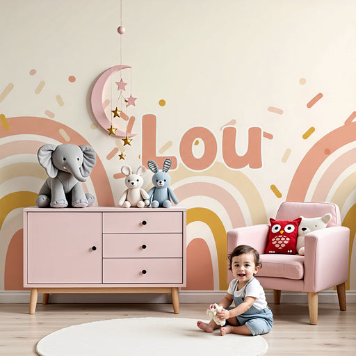 KidsWallPrzearanżuj pokój swojego dziecka w urocze miejsce z tą tapetą dla dzieci z delikatnymi tęczowymi wzorami. Pastelowe odcienie różu i beżu tworzą ko...
