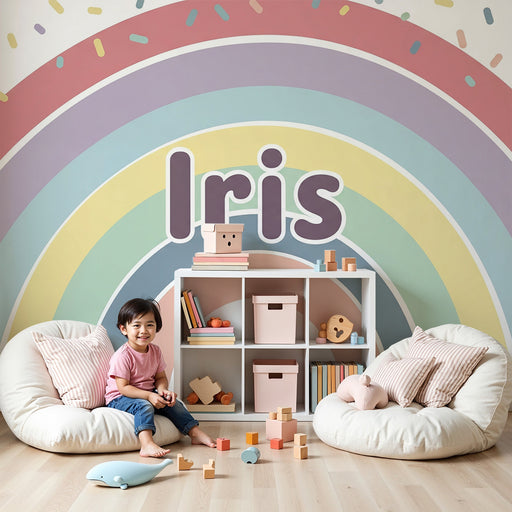 Pokaż wszystkie szczegółyTapety dla dzieci | Pastelowy tęczowy z imieniem Iris