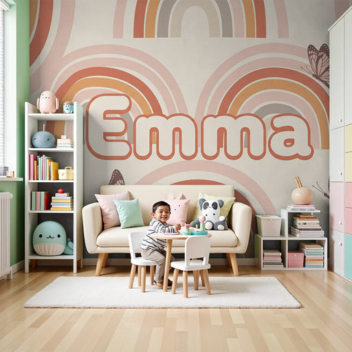 KidsWallPrzynieś do pokoju swojego dziecka odrobinę magii i delikatności dzięki tej tapetom dla dzieci, przedstawiającej kojącą tęczę. Okolona terakotowym ...