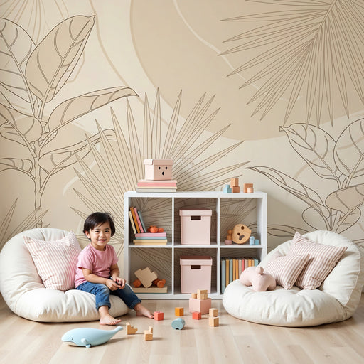 KidsWallPrzekształć pokój swojego dziecka w oazę spokoju dzięki temu tapetowi dla dzieci z delikatnie rysowanymi motywami liści tropikalnych. Na delikatnym...