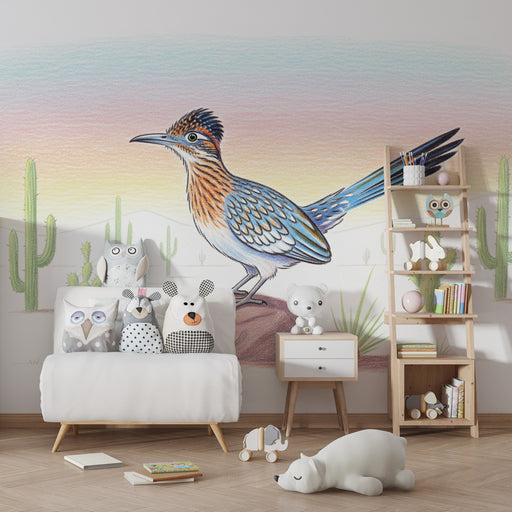 KidsWallPrzemień pokój swojego dziecka za pomocą tego tapety inspirowanej naturą, na której przedstawiony jest piękny ptak na skale. W pustynnym otoczeniu ...