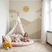 Połącz tę tapetę do pokoju dziecka z naturalnymi drewnianymi dodatkami i miękkimi tekstyliami, aby stworzyć przestrzeń kokonową, w której twoje dziecko może kwitnąć i spokojnie marzyć.