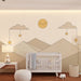Przearanżuj pokój swojego dziecka w urocze miejsce z tą tapetą dla dzieci, przedstawiającą delikatne góry pod gwiaździstym niebem. Uśmiechnięte słońce i delikatne chmury dodają słodyczy temu uspokajającemu uniwersum, idealnemu do odpoczynku i marzeń.