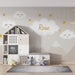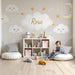 Tapety dla dzieci | Uśmiechnięte chmury i złote gwiazdy na delikatnym tle