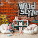 Przekształć swoją przestrzeń za pomocą naszego tapety graffiti, która prezentuje odważne wzory na pomarańczowej ceglanej ścianie. Ten design Wild Style wlewa miejską i artystyczną energię do każdego wnętrza, idealny dla nowoczesnych i kreatywnych pomieszczeń.
