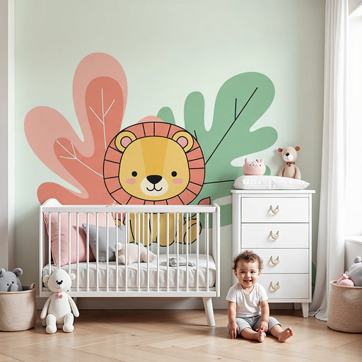 KidsWallPrzekształć pokój swojego dziecka w zabawne i kojące miejsce z tą tapetą dla dzieci, na której przedstawione są urocze zwierzęta. Ciekawy lew, psot...