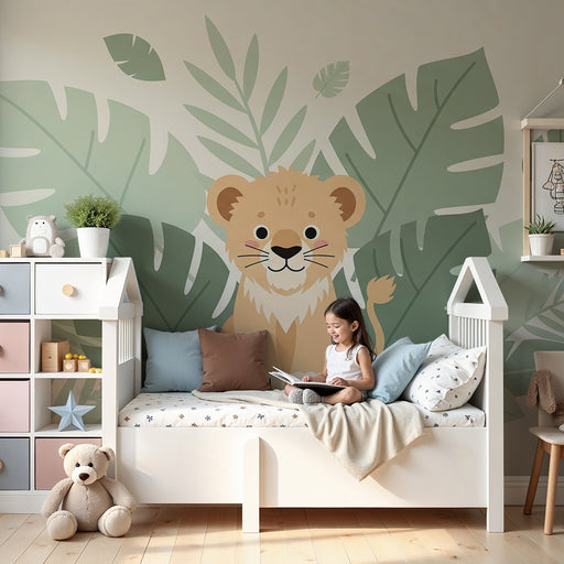 KidsWallPrzekształć pokój swojego dziecka w prawdziwy mały kącik natury dzięki tej tapetce dla dzieci, na której uwagę zwraca urocze lwiątko. Spokojnie sie...