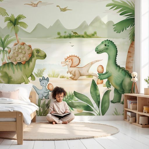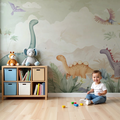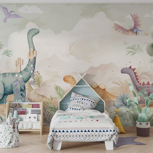 KidsWallZanurz swoje dziecko w fascynującym prehistorycznym świecie dzięki tej tapecie dla dzieci, która przywołuje epokę, gdy dinozaury panowały jako wład...