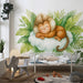 Ta tapeta z śpiącym małpką przedstawia uroczą śpiącą małpkę na chmurze, otoczoną liśćmi dżungli. Idealna do pokoju dziecięcego, tworzy atmosferę spokoju i przygody.
