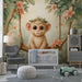 Tapeta z uroczą małpką | Dekoracja dżungli z kwiatami