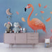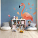 Jasnoniebieskie tło przypomina jasne niebo, podczas gdy odcienie różu flaminga i delikatny ruch unoszących się liści dodają radosnej dynamiki przestrzeni. Każdy detal jest starannie wykonany, tworząc urocze środowisko, w którym twoje dziecko może się zanurzyć.