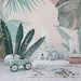 Przyozdób pokój dziecka tym tapetą dla dzieci inspirowaną egzotycznymi krajobrazami. Wyśmienite połączenie tropikalnych liści i pastelowych odcieni tworzy wspaniałą atmosferę, w której panuje spokój. Delikatne detale liści w połączeniu z delikatnymi dotknięciami dodają nowoczesnej elegancji do dekoracji pokoju.