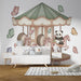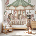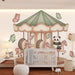 Przekształć pokój swojego dziecka w magiczne miejsce za pomocą delikatnej tapety przedstawiającej bajkowy karuzelowy. Trzy urocze jeże i wesoły panda jeżdżą na różowych koniach, tworząc zabawną i uspokajającą scenę. Kolorowe motyle fruwają dookoła, dodając odrobinę marzeń do tego czarującego świata.
