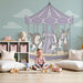 Zanurz się w magiczny świat z tą tapetą dla dzieci, przedstawiającą uroczą karuzelę. Na środku eleganckiego karuzela znajduje się wielu uroczych zwierząt, takich jak psotny jeż, majestatyczne białe konie i słodki jeleń. Ta magiczna scena przywołuje marzenia o przygodach i radości dla twojego małego.