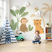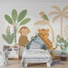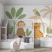 Delikatne odcienie zieleni i beżu tworzą spokojną atmosferę, idealną do spokojnego snu lub kreatywnej zabawy. Małpa ze swoim zadowolonym wyrazem twarzy i tygrys z uroczymi paskami dodają radosnego ducha do pokoju. Każdy element tej tapety dla dzieci został zaprojektowany, aby sprzyjać marzeniom i ucieczce.