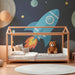 Każdy element, począwszy od dynamicznej rakiety po stylizowane planety, został zaprojektowany, aby pobudzić ciekawość i miłość do eksploracji kosmosu. Jasne i zabawne kolory dodają radości do pokoju, zachęcając do marzeń i bezgranicznej zabawy.