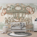 Przekształć pokój swojego dziecka w magiczne królestwo za pomocą tego tapety dla dzieci przedstawiającej magiczną karuzelę. W centrum sceny urocza żyrafa w spódnicy baletowej tańczy na drewnianym koniu, otoczona przez wdzięczne konie i delikatne motyle, które tańczą w powietrzu. Zachwycająca dekoracja, która pobudza wyobraźnię i przenosi dzieci do świata marzeń.