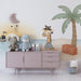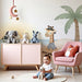 Delikatne odcienie tła harmonijnie łączą się z elementami dekoracyjnymi, takimi jak zielona palma i żaglowiec, tworząc relaksującą i radosną atmosferę. Ta zabawna sceneria obiecuje przynieść do przestrzeni twojego dziecka odrobinę magii i eksploracji, pobudzając ich ciekawość i chęć przygody.