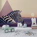 Przekształć pokój swojego dziecka w spokojne sanktuarium za pomocą tego tapety dla dzieci, na której pokazane są spokojne zebry na tle zachodzącego słońca. Na pierwszym planie dwie zebry spokojnie odpoczywają na łagodnej łące, podczas gdy w tle piramidy majestatycznie wznoszą się pod pastelowym niebem.