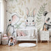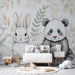 Papier peint chambre bébé | Animaux mignons et feuillage délicat