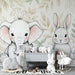 Bonifiez la chambre de votre bébé avec ce papier peint pour bébé mettant en scène des animaux adorables. Un éléphant espiègle, un lapin curieux et un panda câlin se tiennent côte à côte, entourés de feuilles délicates et de motifs floraux apaisants. Ce décor enchanteur éveillera l'imagination de votre petit tout en apportant une touche de nature à son espace.