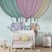 Les nuances douces des ballons et l'aspect ludique des personnages créent une ambiance accueillante et apaisante, idéale pour la chambre de votre petit. Chaque détail, des sourires des animaux aux formes arrondies des ballons, est conçu pour stimuler l'imagination tout en apportant une touche de douceur.