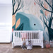 Embarquez votre bébé dans une aventure magique avec ce papier peint pour bébé mettant en scène un adorable éléphant émergeant d'une forêt riche en couleurs. Au milieu de feuilles aux teintes douces et de branches délicates, cet éléphant devient le compagnon idéal pour éveiller l'imagination de votre tout-petit.