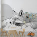 Offrez un souffle de rêve à la chambre de votre bébé avec ce papier peint pour bébé représentant un renard paisible dormant sur un lit de nuages. Avec un design délicat en noir et blanc, cette illustration évoque la tranquillité et la douceur, créant un espace propice au repos et à l'imagination.