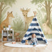 Les couleurs pastel, allant des tons chauds de l'orange au doux beige, ajoutent une touche de sérénité à l’espace. Chaque détail des animaux et des plantes est méticuleusement dessiné pour une ambiance ludique et apaisante. Ce décor invite à l'évasion et stimule la curiosité.